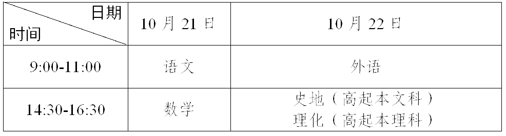 1.高中起点升本、专科考试时间表