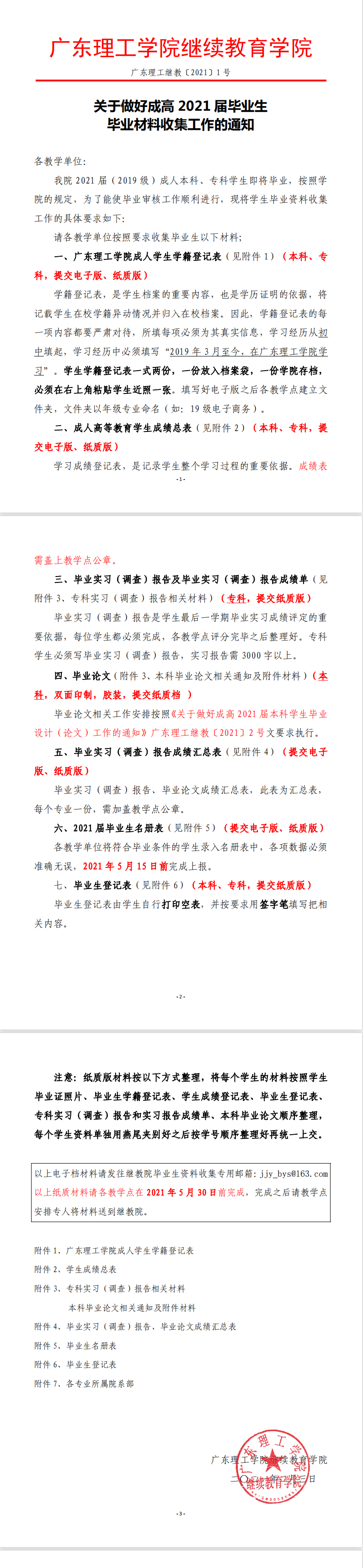 关于做好成高 2021 届(2019级)毕业生毕业材料收集工作的通知