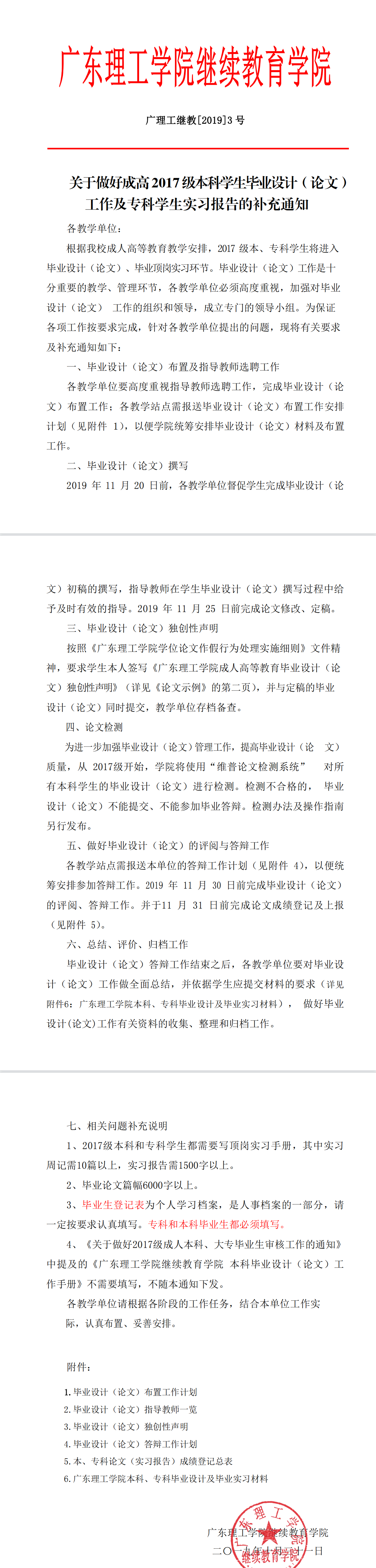 关于做好成高 2017 级本科学生毕业设计(论文)工作及专科学生实习报告的补充通知