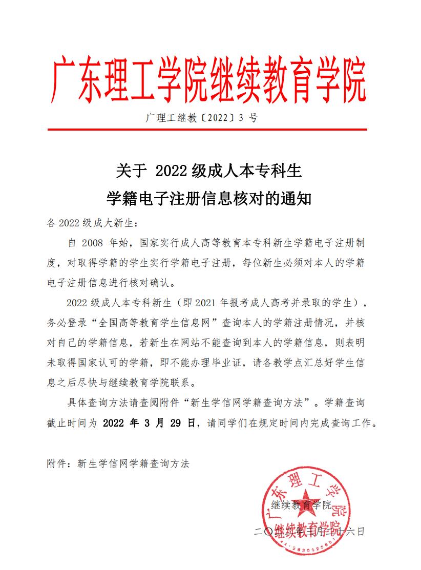 关于2022级成人本专科生学籍电子注册信息核对的通知