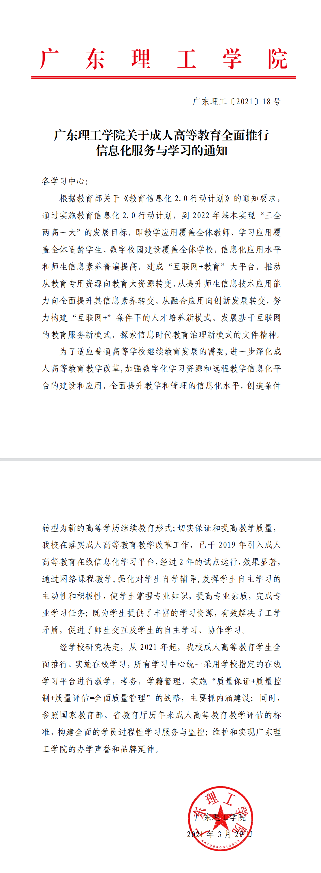 304am永利集团关于成人高等教育全面推行信息化服务与学习的通知